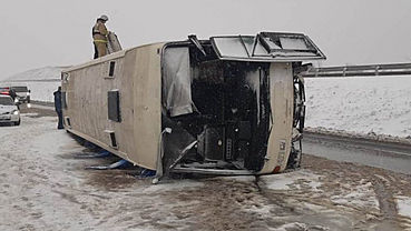 14 декабря на трассе Пермь — Екатеринбург перевернулся автобус, в котором 53 человека возвращались с концерта певца Макса Коржа. По предварительной информации, водитель уснул за рулем, из-за чего автобус съехал с дороги, пишет "КП". altapress.ru »