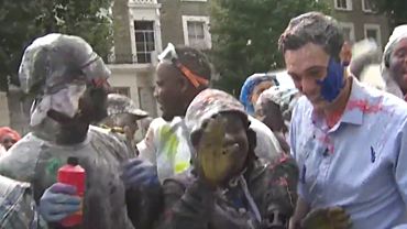 Фото: twitter.com Ведущего канала Sky News (Великобритания) Джо Тайди в прямом эфире "обстреляли" сухими красками на карнавале в Лондоне, откуда мужчина вел репортаж... amic.ru »