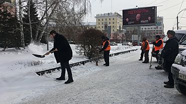 На Алтае обсуждают видеоролик, на котором мужчина, похожий на чиновника, чистит лопатой снег напротив Правительства региона altai.aif.ru »