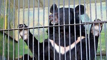 Гималайский медведь кокетничает в барнаульском зоопарке