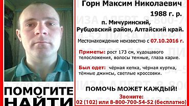 Фото: lizaalert.org Волонтеры более месяца ведут поиски пропавшего без вести жителя поселка Мичуринский Рубцовского района Максима Горна... amic.ru »