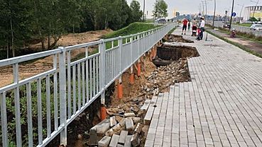 Фото: vk.com В Нижнем Новгороде ливень размыл дорогу, построенную к чемпионату мира по футболу, а также часть Волжской набережной... amic.ru »