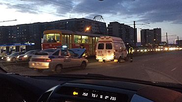 После автобус выехал на трамвайные пути. altapress.ru »