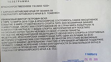 Губернатор Алтайского края Виктор Томенко получил благодарственную телеграмму от главы Красноярского края Александра Усса, сообщил на своей странице в Facebook пресс-секретарь главы региона Дмитрий Негреев. amic.ru »