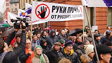 Фото: zondnews.ru Несколько тысяч человек поучаствовали в акции в защиту русских школ Латвии в центре Риги... amic.ru »