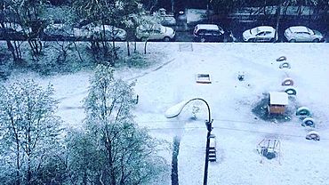 Сильный снегопад обрушился на Барнаул после дневного ливня