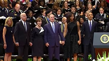 Фото: youtube.com Бывший американский президент Джордж Буш-младший приплясывал на панихиде по погибшим в Далласе (штат Техас) полицейским... amic.ru »