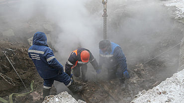 Специалисты продолжают работать на месте аварии на пр. Ленина, 142, где ночью в мороз лопнула магистральная теплосеть. Отопление и горячую воду в дома 2,5 тысяч горожан обещают вернуть к вечеру, примерно, к 20:00-21:00. altapress.ru »