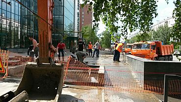 Фото: Amic.ru Восстановительные работы начались у магазина "Книжный мир" в центре Барнаула, где 22 июня произошел порыв водопровода... amic.ru »